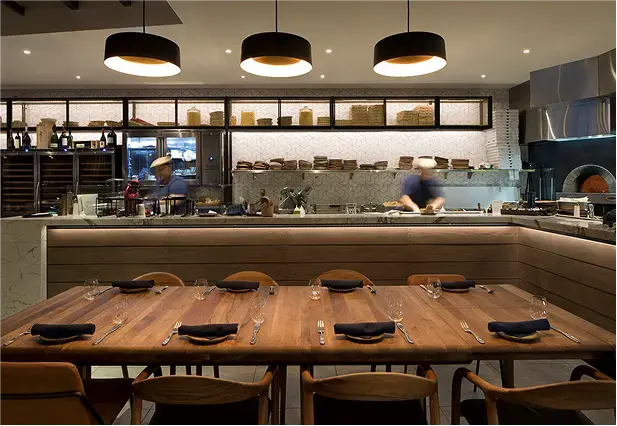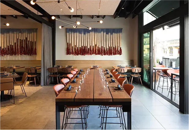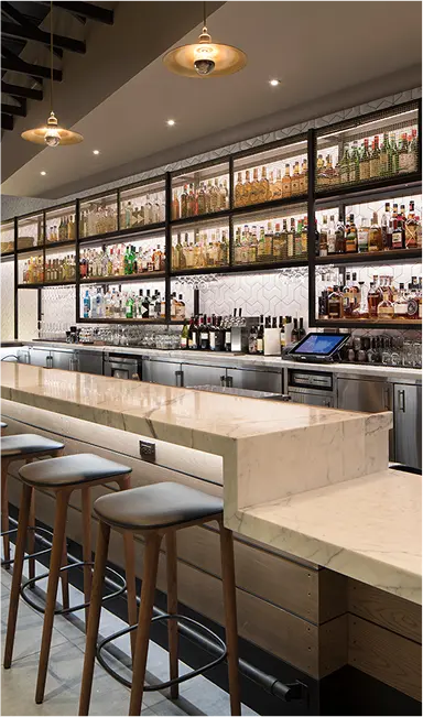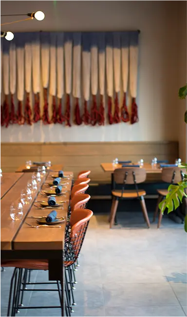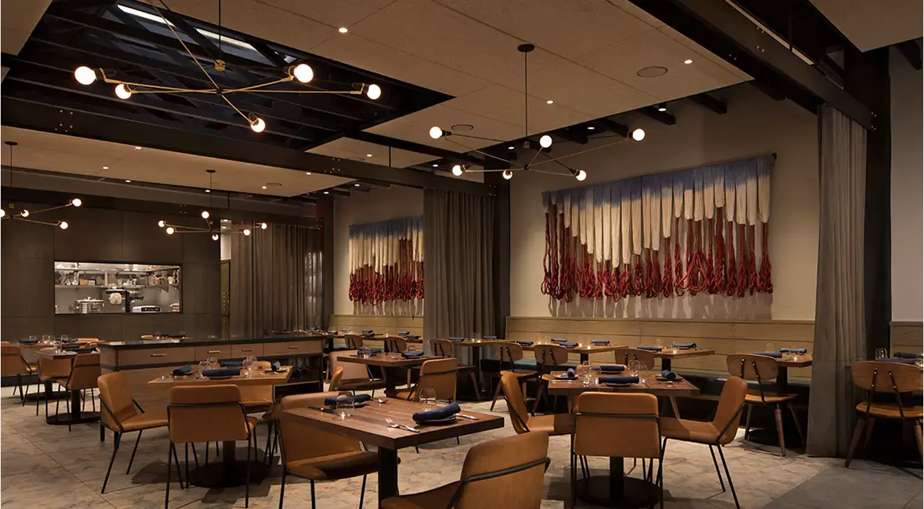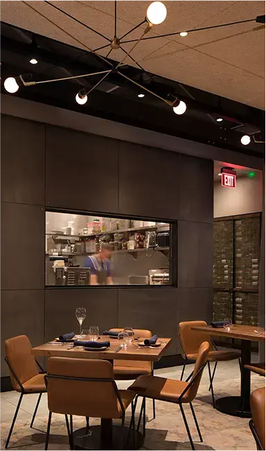 Pausa is a comfortable yet upscale Italian restaurant where modern design meets timeless tradition. Featuring crafted details, a marble bar, custom fiber art, and open views to the wood-fired kitchen, the space blends geometric tile, brass accents, and warm wood tones to create a relaxed sense of luxury. Inspired by the chef’s Veneto roots, Pausa balances authenticity and modernity, becoming a vibrant gathering place for both regulars and the nightlife crowd. The result is a space that feels both refined and welcoming, designed to invite guests to linger.