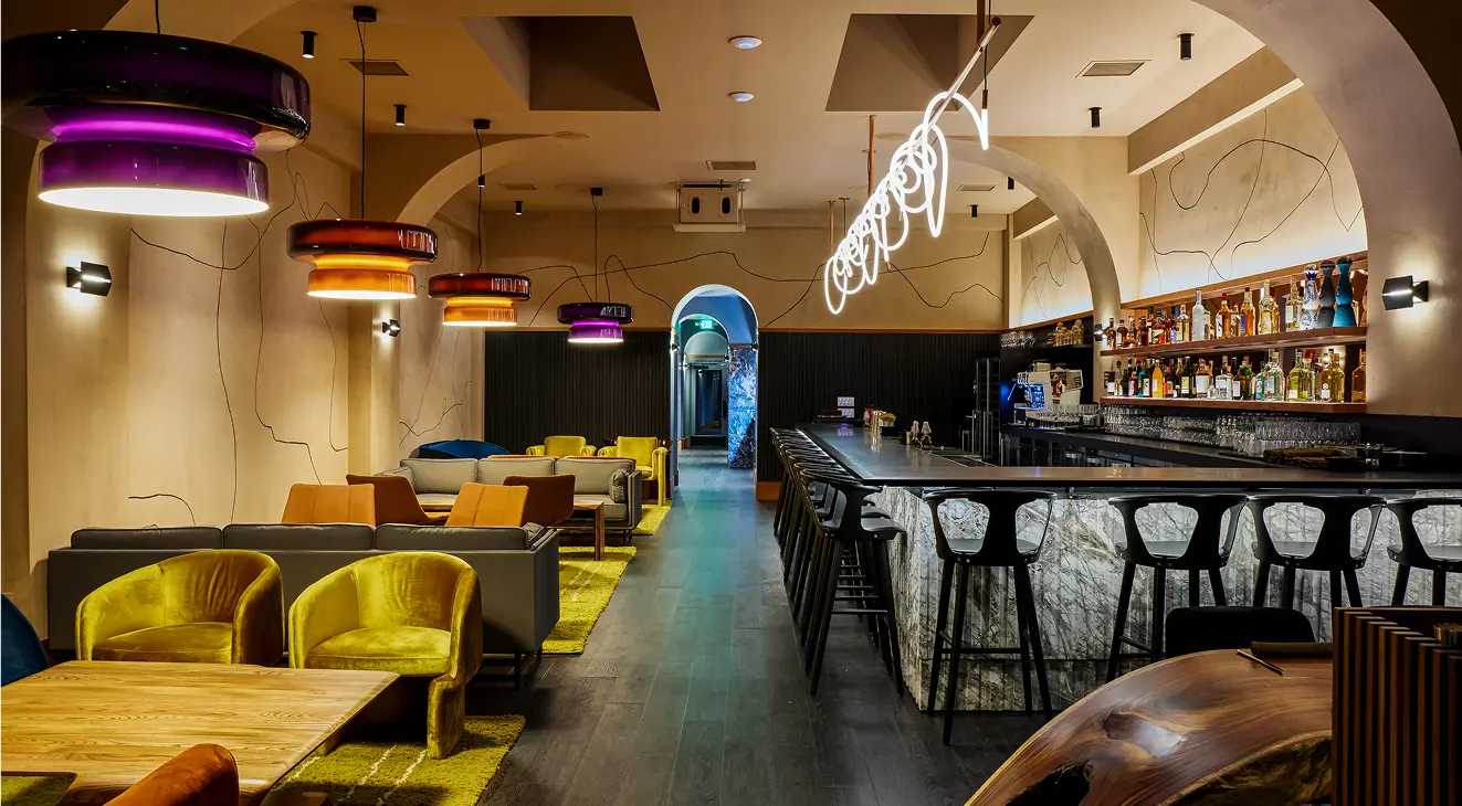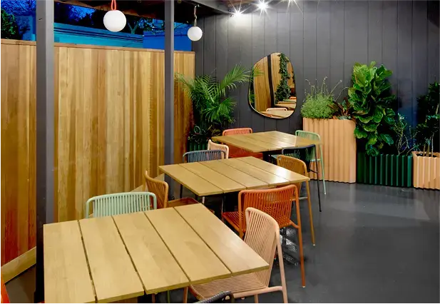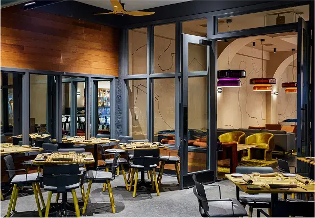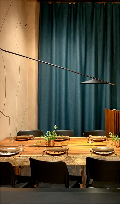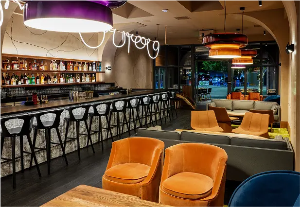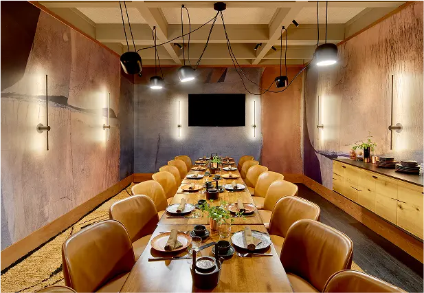 Sekoya reimagines dining in Palo Alto as a cosmopolitan yet deeply local destination inspired by the California redwood and the owner’s Turkish heritage. Salvaged redwood, stone, and earth-toned plaster ground the space, while modern lighting and refined textiles add sophistication. Highlights include a ribbed marble bar, reclaimed communal tree table, and custom mural “scribble” wall. From the vibrant patio to intimate lounge and artful restrooms, Sekoya blends natural beauty with urban energy.
